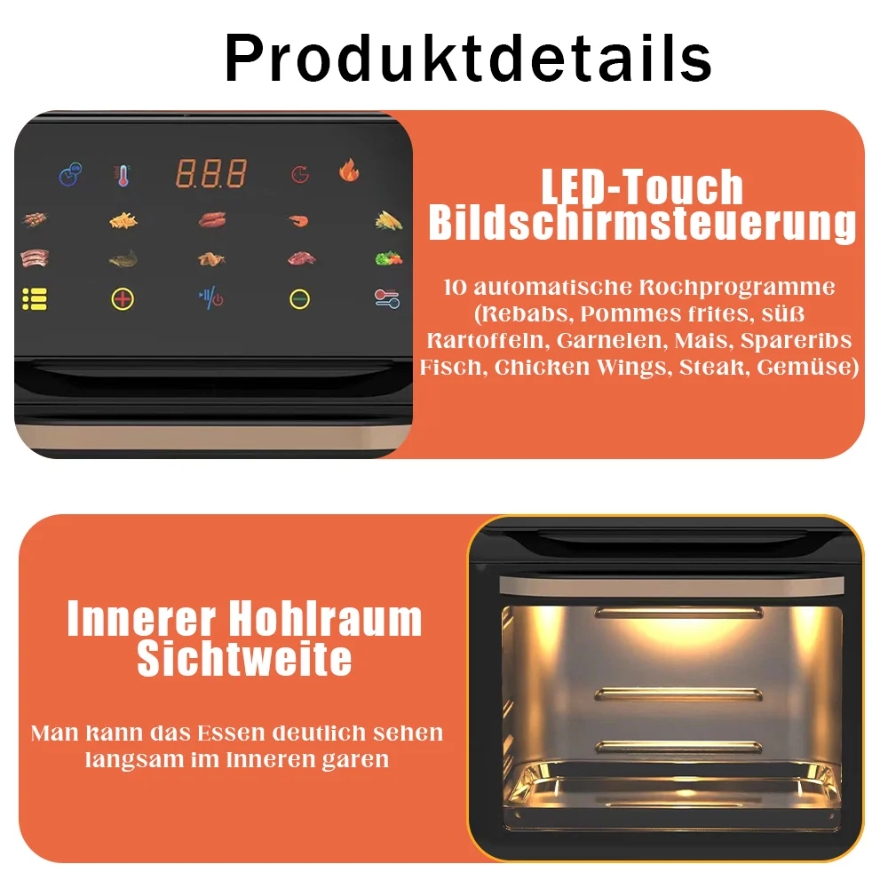 5L Elektrische Heißluftfritteusen Ölfreie Automatische Haushaltsküche 360 Backkonvektionsofen Fritteuse ohne Öl